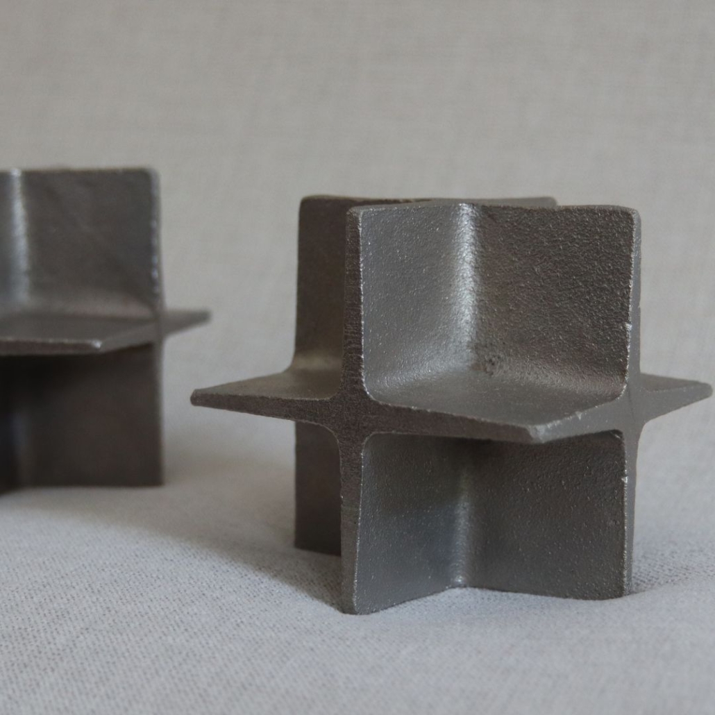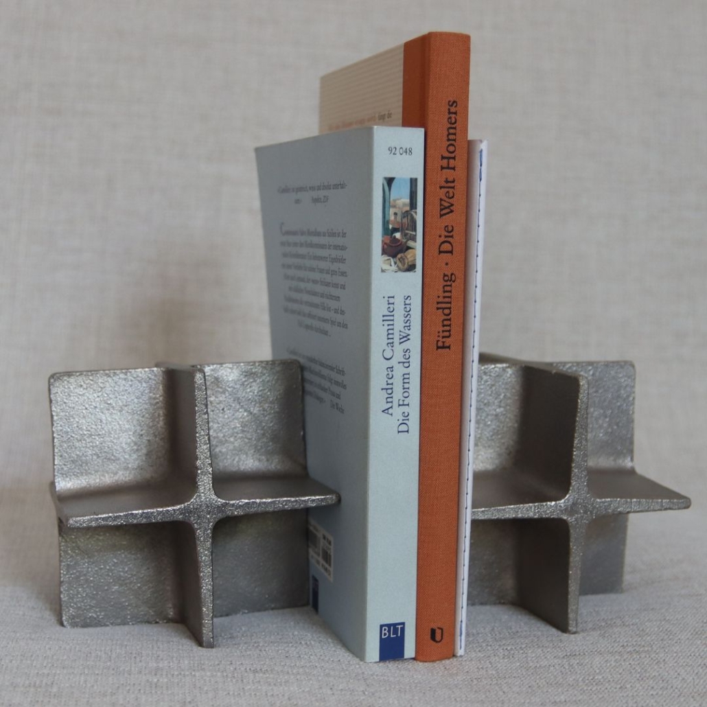 Schönes Paar österreichischer modernistischer Buchstützen, entworfen und ausgeführt in den 1960er Jahren von Carl Aubock, Wien. Sehr solide, aus vernickeltem Gusseisen hergestellt. In sehr gutem Zustand mit schöner Patina.