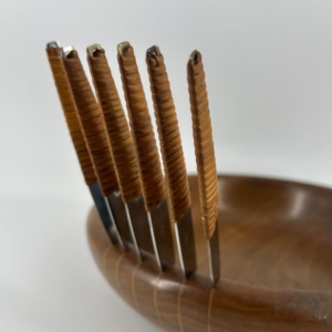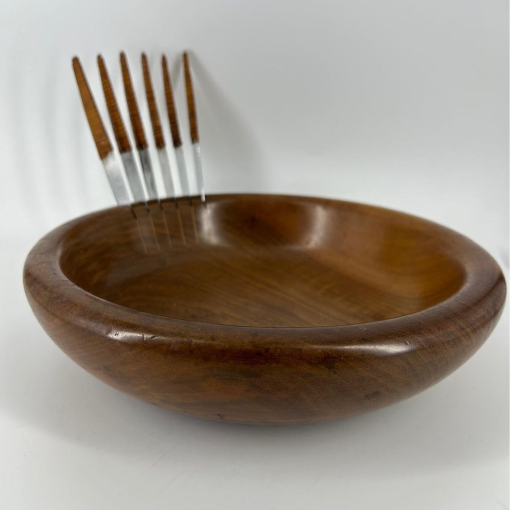 Durchdachtes Design: Messer können in den Rand der Obstschale gesteckt werden. Sehr guter Zustand.