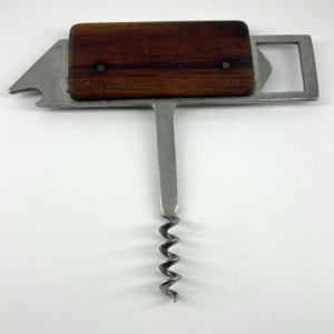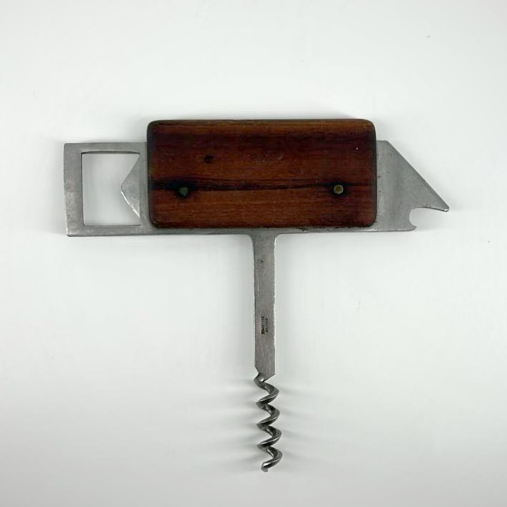 Korkenzieher und Kapselheber Kombination produziert in der Werkstätte Carl Auböck Wien. Bestehend aus Edelstahl mit angenieteten Holz Griffschalen.
