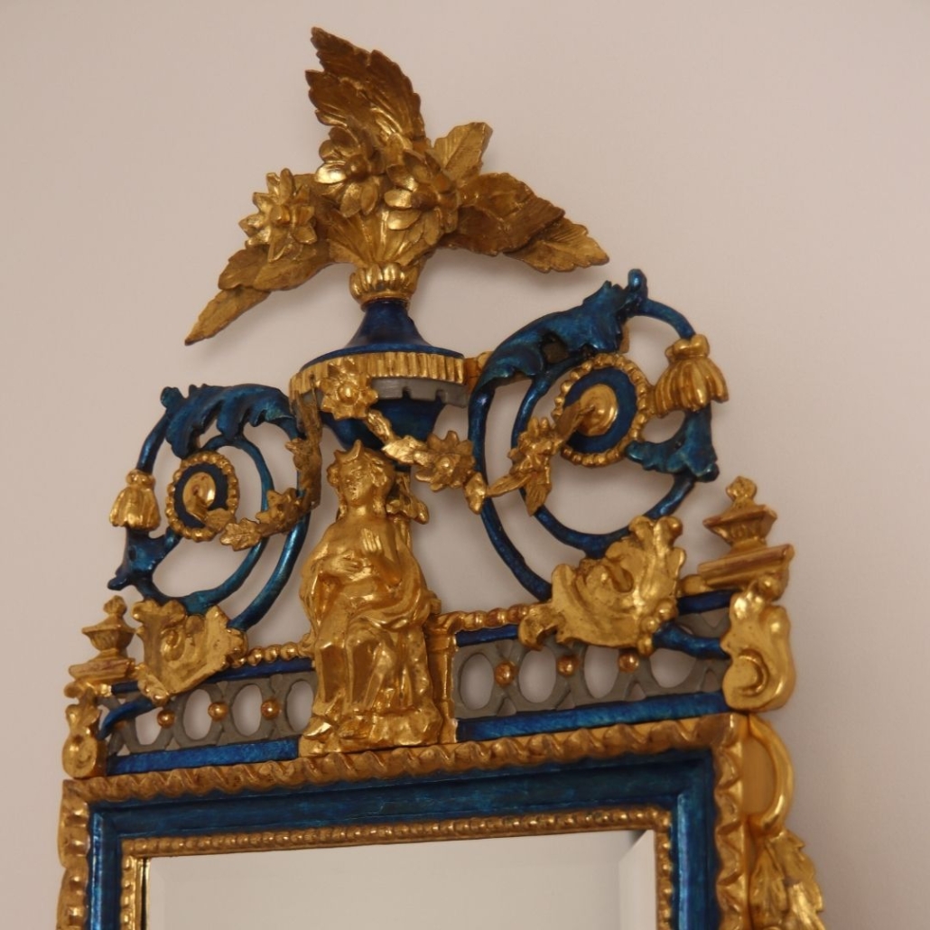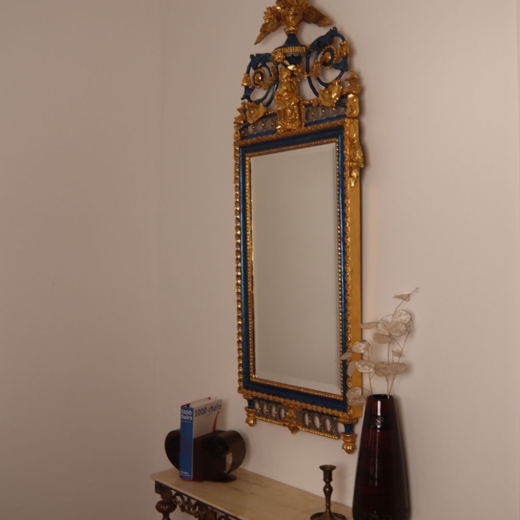 Prachtvoller Spiegel, Ende 18. Jahrhundert. Originale Fassung wurde freigelegt und erneuert.